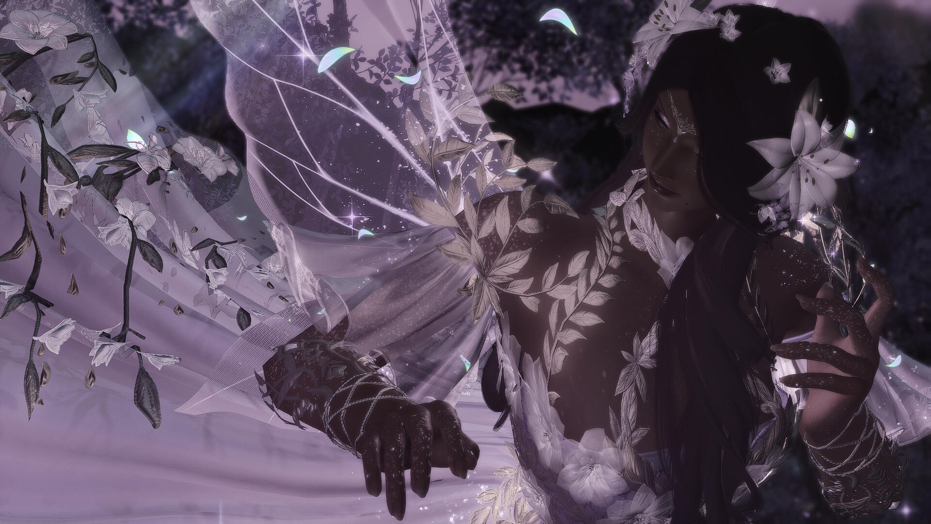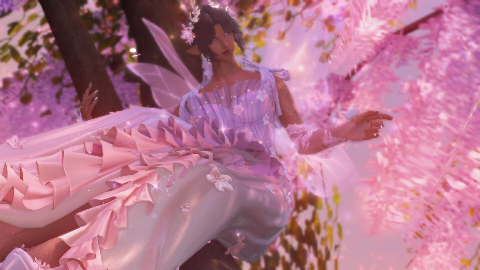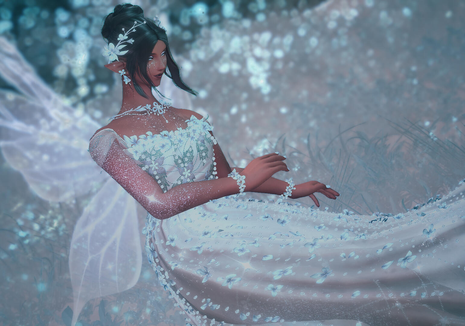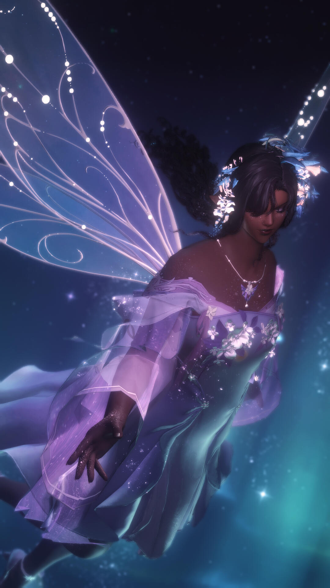 Before the flood of light in the First, there existed a Faerie queendom hidden in a veil of magic, an island once known as Triah Mheg. Unlike the pixies of Il Mheg, the faeries who inhabited this land were mortal beings tethered by their worldly concerns. They strongly resembled elezen, only they possessed sparkling bodies, insectile wings, and much longer lifespans. These faeries were a peaceful sort, wholly independent due in part to their distrust in mankind, but especially to their innate magical abilities and attunement to the natural world.Satya was born to Opara Vastaya, head seamstress of the spring court. Just before the end of each season, as was faerie tradition, Mothers would travel to Il Mheg with their newborns to receive blessings from the dreamspinners, pixies responsible for making the dreams of young mortals pleasant and vivid. For infant faeries, such dreams were key to developing potent magic. After Satya's dreams were blessed, Opara made an unprecedented choice. She remained in the mainland with her child instead of returning to her queendom. Soon after, Triah Mheg succumbed to the flood of light, leaving Opara and Satya as the last faeries of their kind.