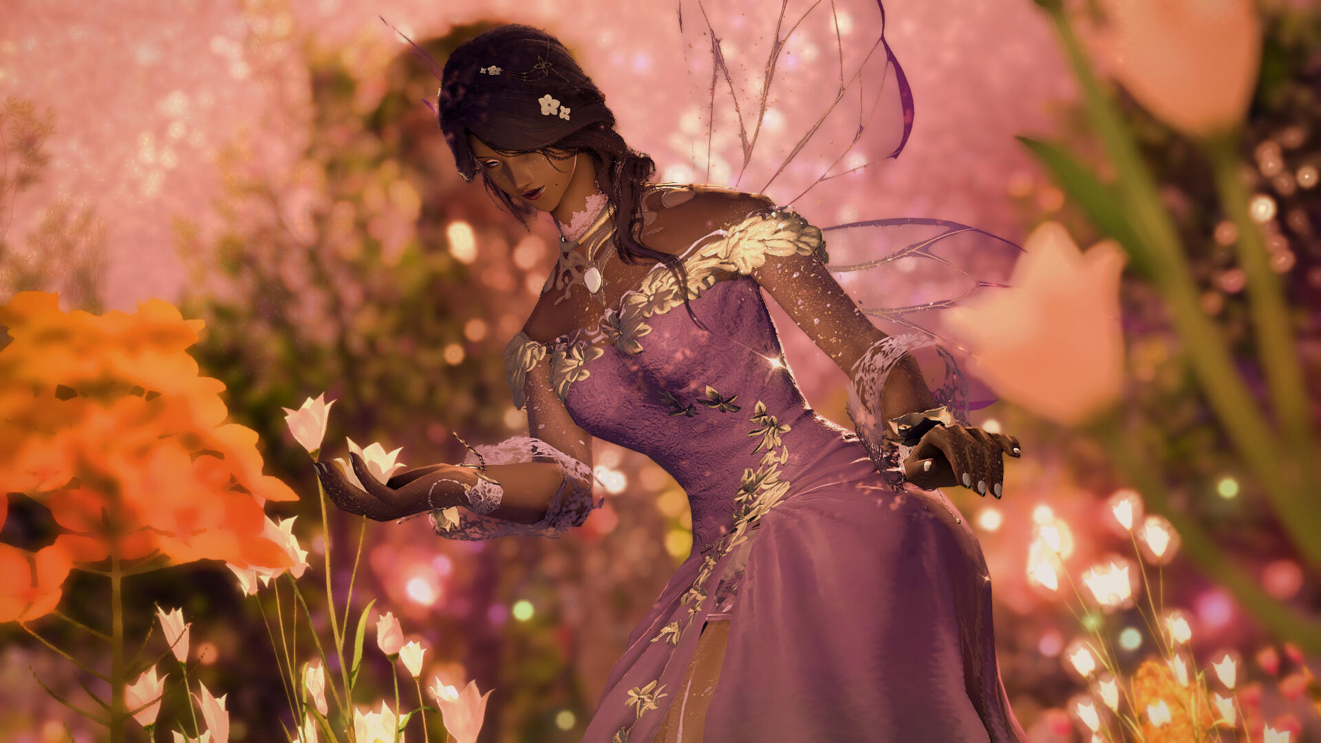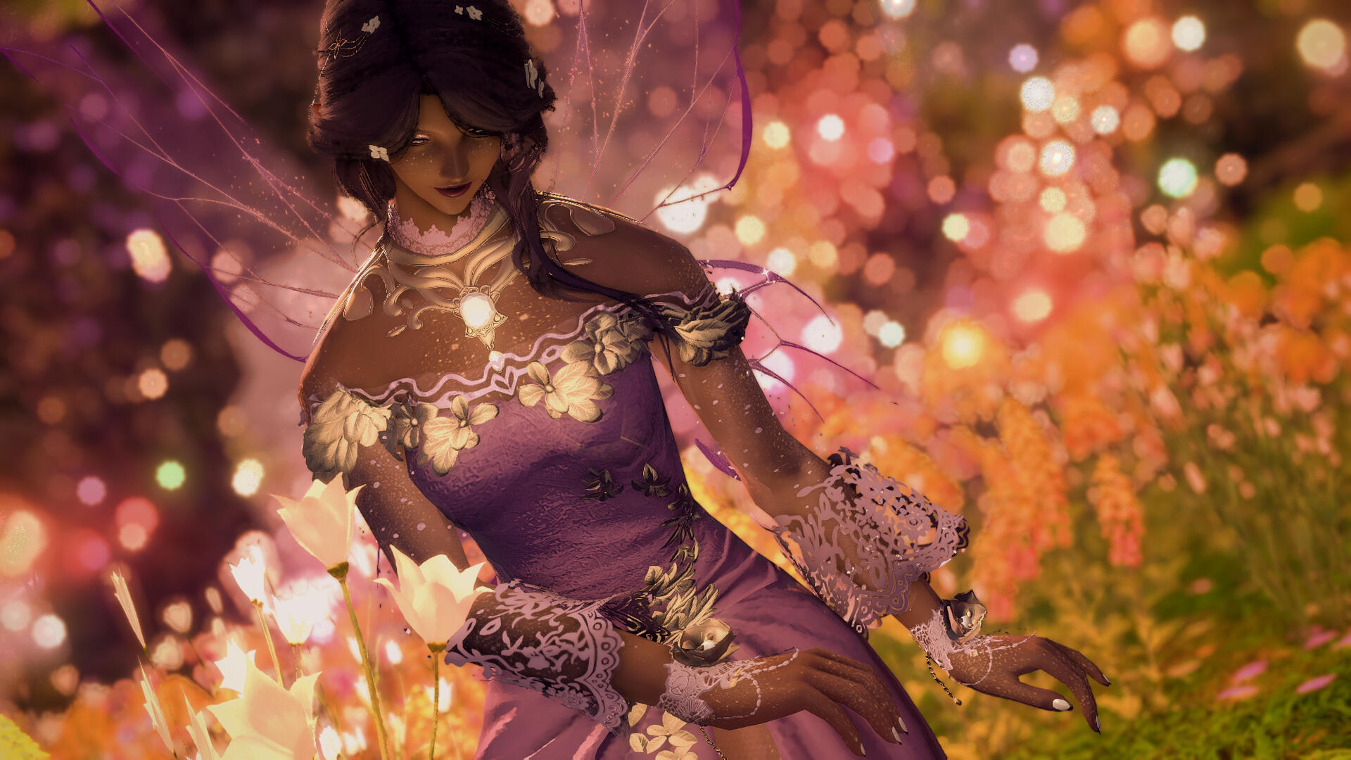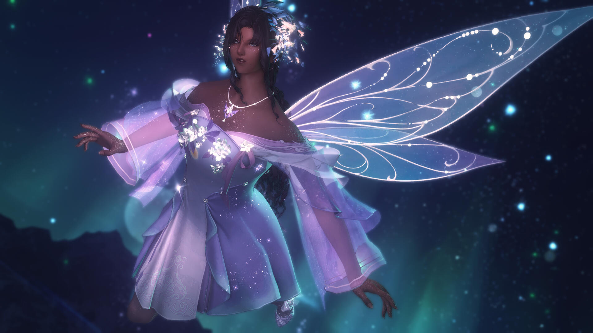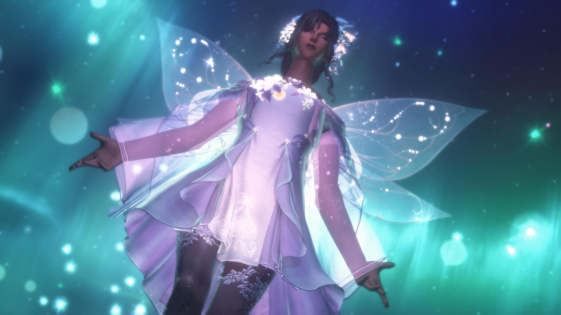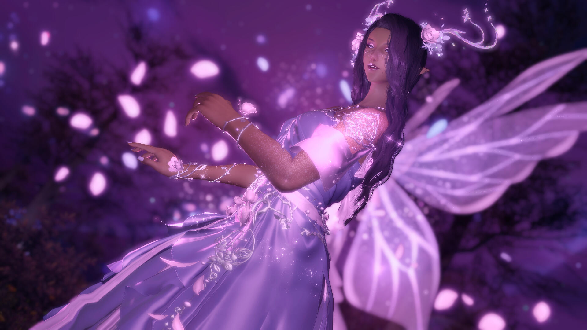 Before the flood of light in the First, there existed a Faerie queendom hidden in a veil of magic, an island once known as Triah Mheg. Unlike the pixies of Il Mheg, the faeries who inhabited this land were mortal beings tethered by their worldly concerns. They strongly resembled elezen, only they possessed sparkling bodies, insectile wings, and much longer lifespans. These faeries were a peaceful sort, wholly independent due in part to their distrust in mankind, but especially to their innate magical abilities and attunement to the natural world.Satya was born to Opara Vastaya, head seamstress of the spring court. Just before the end of each season, as was faerie tradition, Mothers would travel to Il Mheg with their newborns to receive blessings from the dreamspinners, pixies responsible for making the dreams of young mortals pleasant and vivid. For infant faeries, such dreams were key to developing potent magic. After Satya's dreams were blessed, Opara made an unprecedented choice. She remained in the mainland with her child instead of returning to her queendom. Soon after, Triah Mheg succumbed to the flood of light, leaving Opara and Satya as the last faeries of their kind.