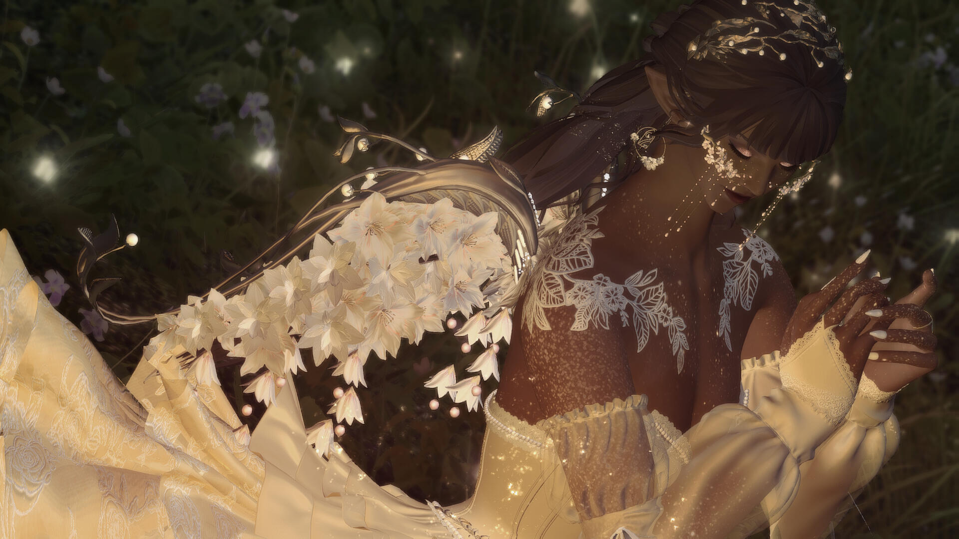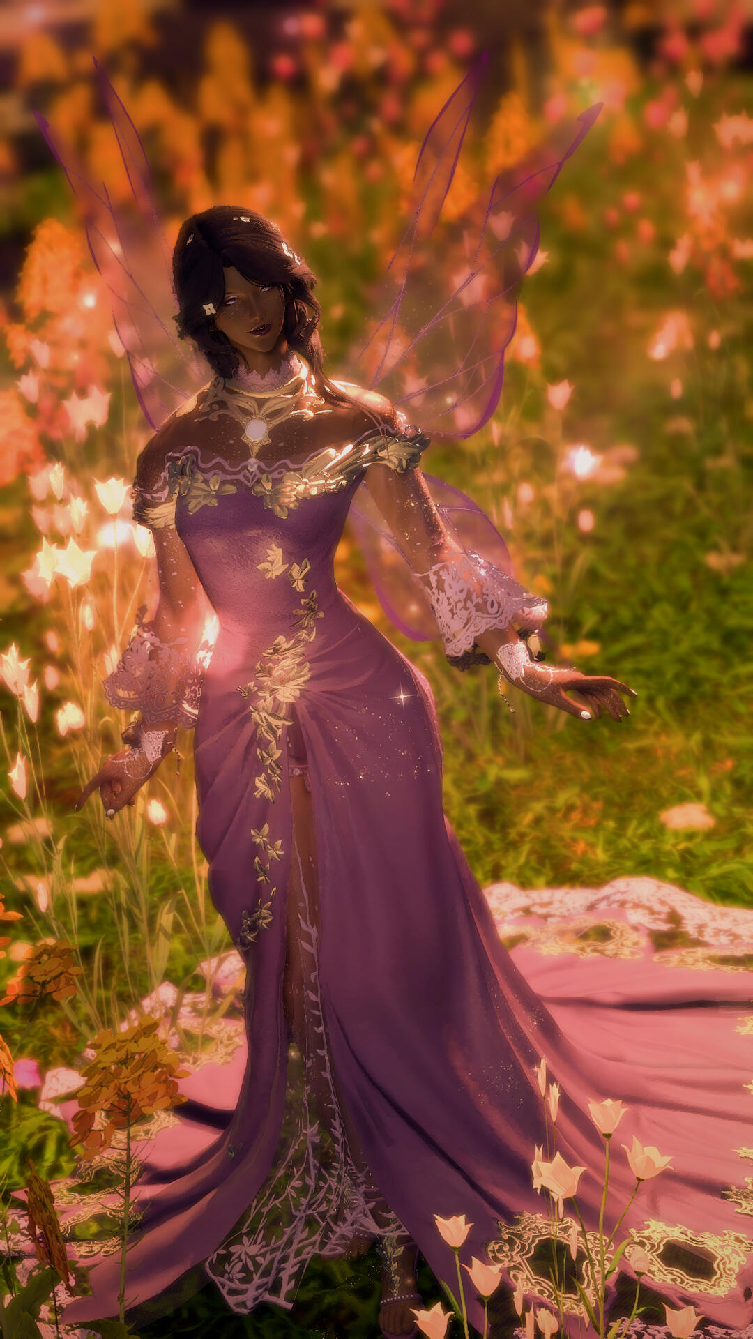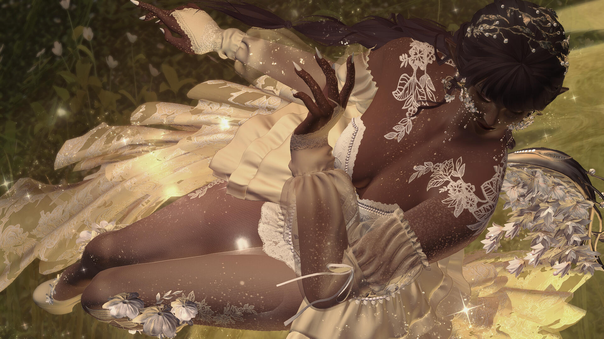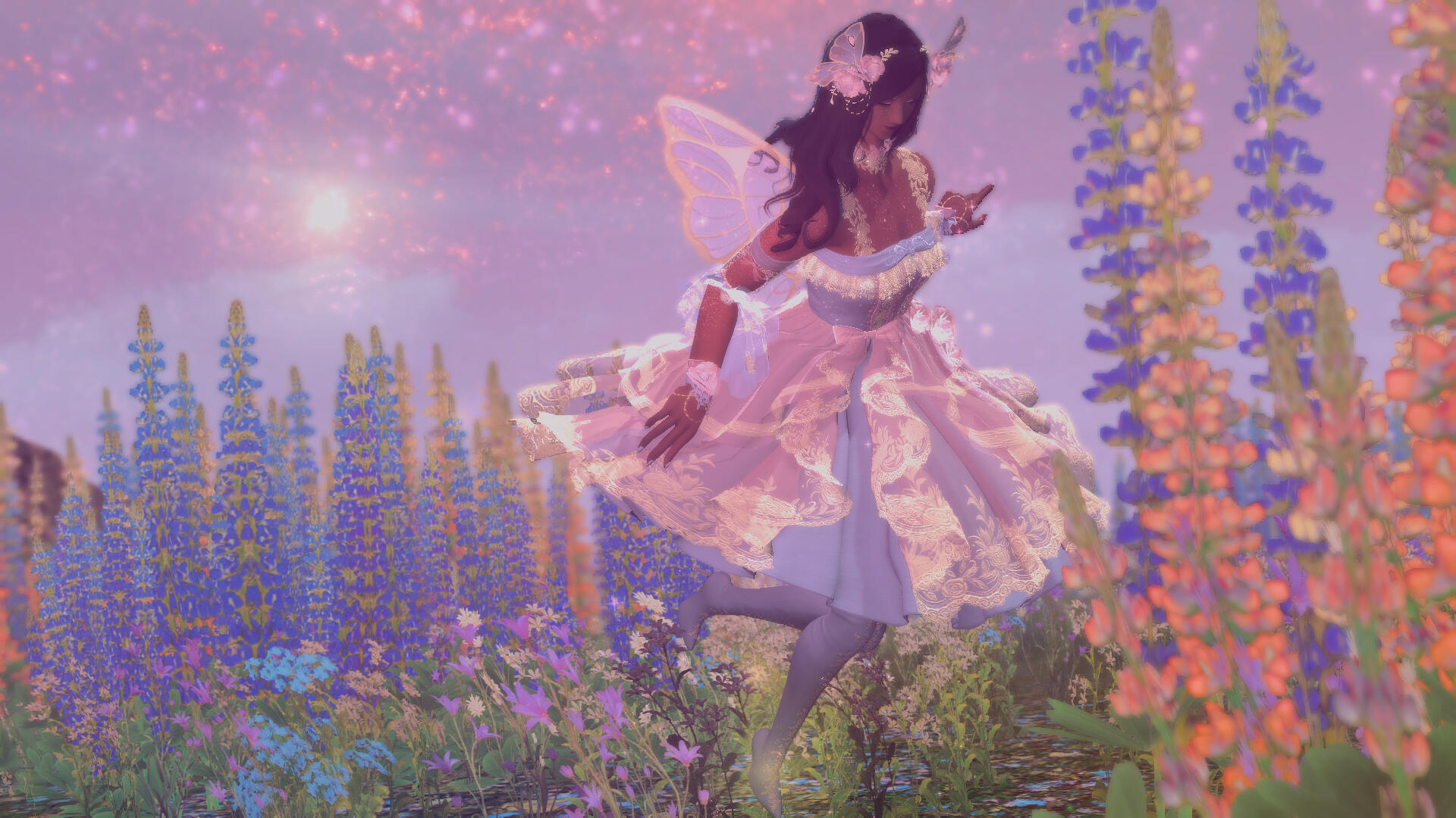 Before the flood of light in the First, there existed a Faerie queendom hidden in a veil of magic, an island once known as Triah Mheg. Unlike the pixies of Il Mheg, the faeries who inhabited this land were mortal beings tethered by their worldly concerns. They strongly resembled elezen, only they possessed sparkling bodies, insectile wings, and much longer lifespans. These faeries were a peaceful sort, wholly independent due in part to their distrust in mankind, but especially to their innate magical abilities and attunement to the natural world.Satya was born to Opara Vastaya, head seamstress of the spring court. Just before the end of each season, as was faerie tradition, Mothers would travel to Il Mheg with their newborns to receive blessings from the dreamspinners, pixies responsible for making the dreams of young mortals pleasant and vivid. For infant faeries, such dreams were key to developing potent magic. After Satya's dreams were blessed, Opara made an unprecedented choice. She remained in the mainland with her child instead of returning to her queendom. Soon after, Triah Mheg succumbed to the flood of light, leaving Opara and Satya as the last faeries of their kind.