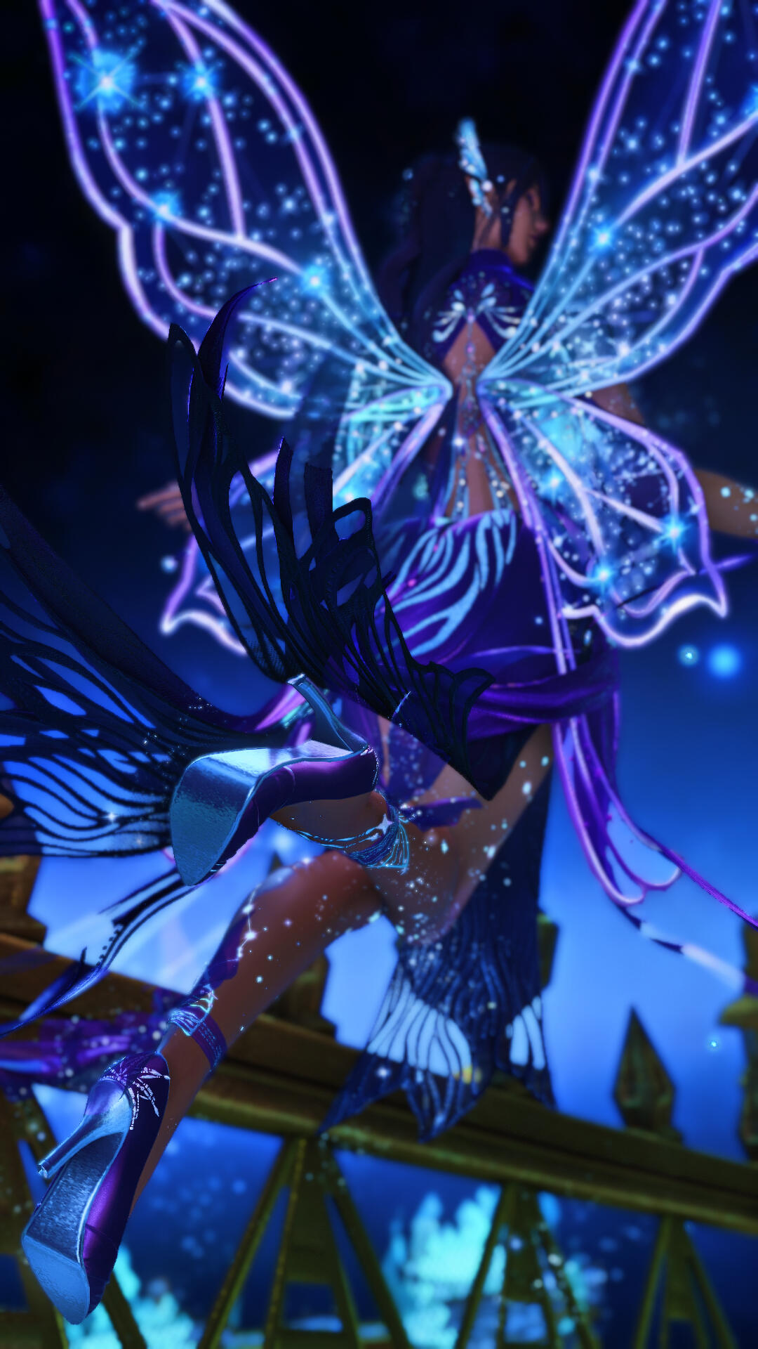 Fancy Flight: Glittering wings enable her to flutter gracefully about the air. Doing so for too long can exhaust her and weaken her spells.