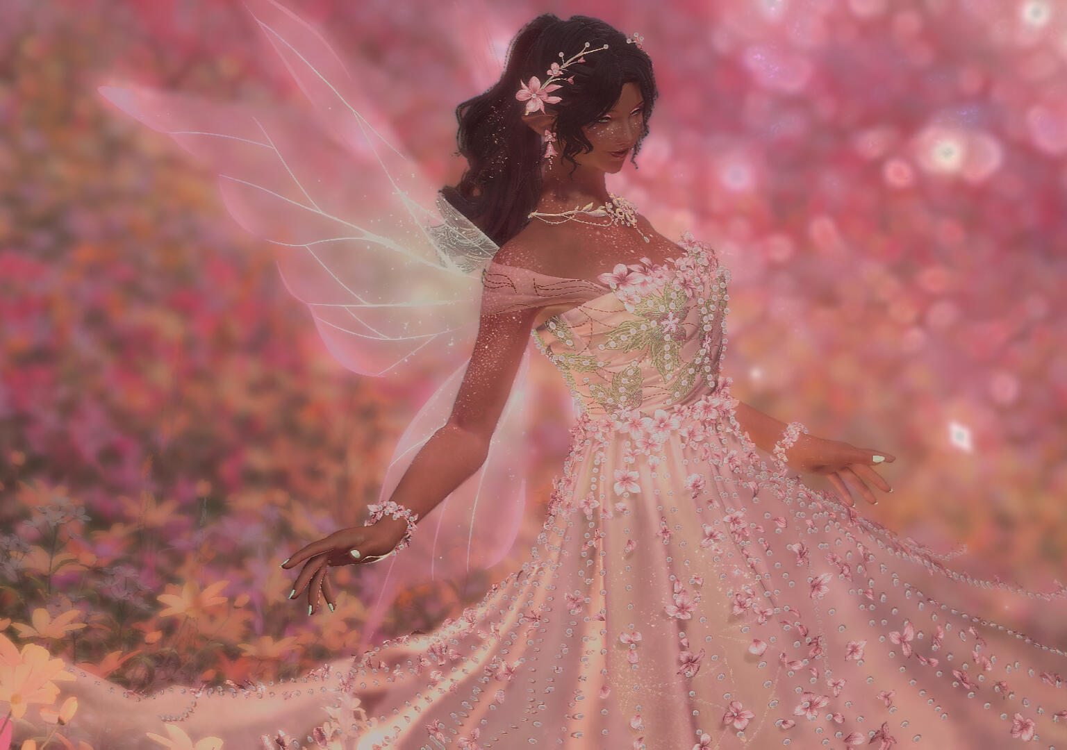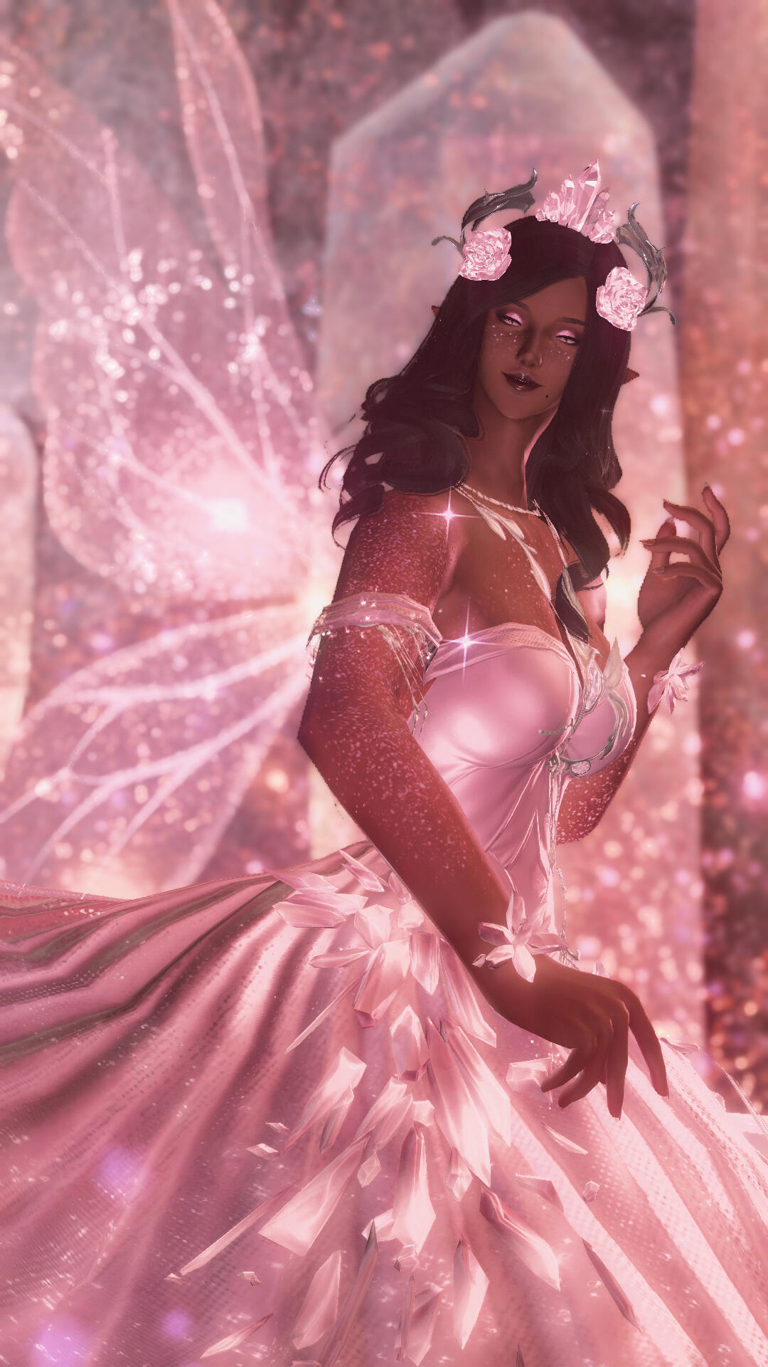 ⋆˙⟡ A faerie's dance shall guide her even through cavernous depths, her fervent steps carving perpetual memories into the precious stones which encrust her path. As her heels pound against ancient quartz, she kicks up a rose-tinted dust, lining her gown with a lovely luster that could heal her wounded heart. ✧˖°.
