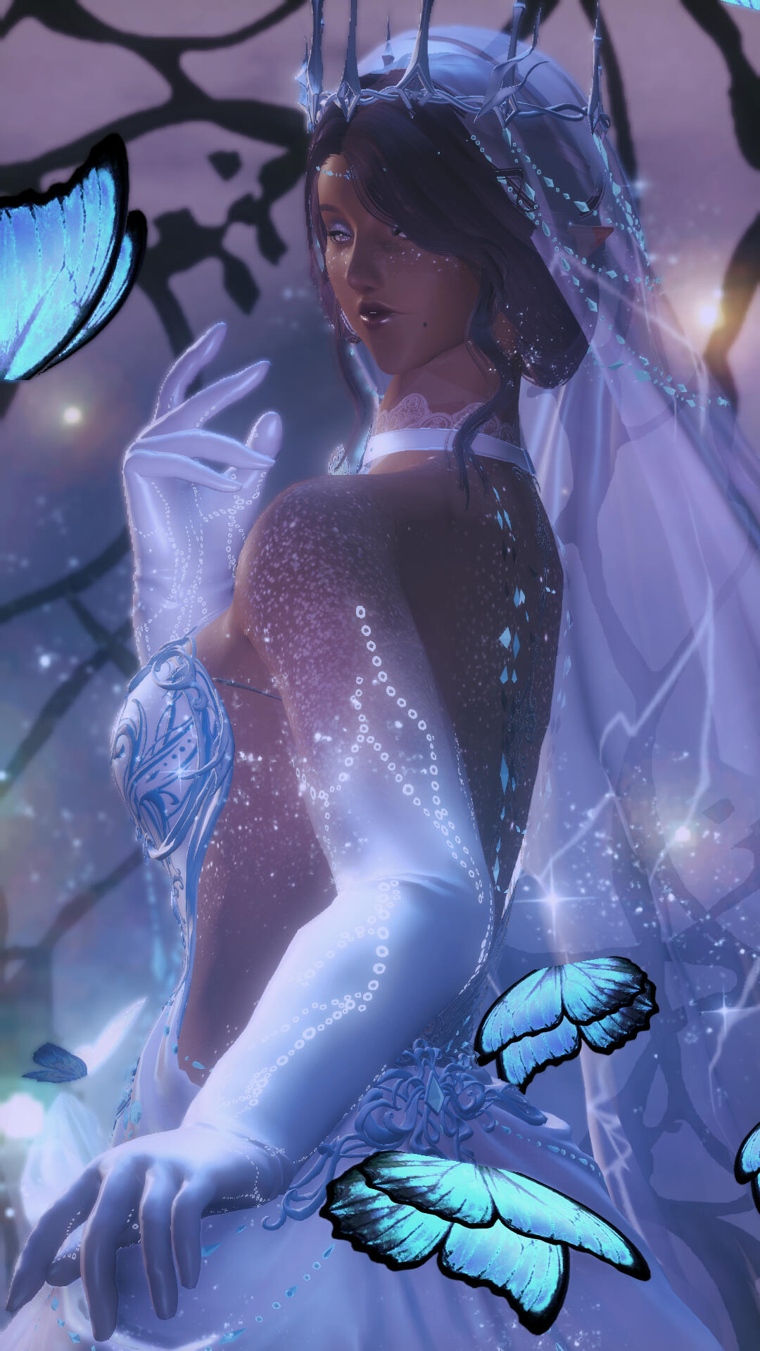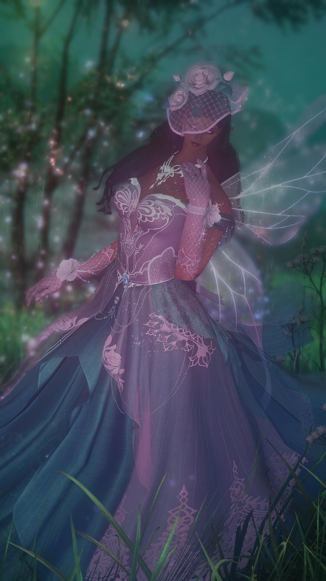 ⋆˙⟡ It had been decades since the faerie queen last spread her wings, for she was rendered flightless by her fearfulness. Even so, the butterflies beckoned her forth, tugging at her veil just as they did with her insecurity. Her memory lives on in silk spun with sorrow, a replica of the regalia she wore in that defining moment. ✧˖°.